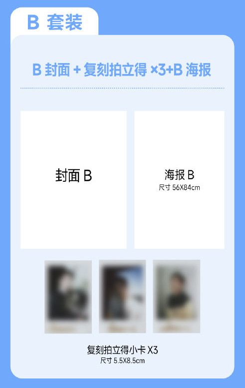 雑誌1冊+B版印刷サイン入りポラロイドカード3枚+B版ポスター1枚