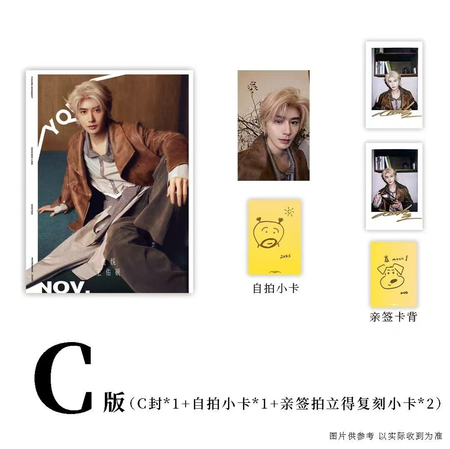 雑誌1冊+C版自撮りフォトカード1枚+C版印刷サイン入りポラロイドカード2枚