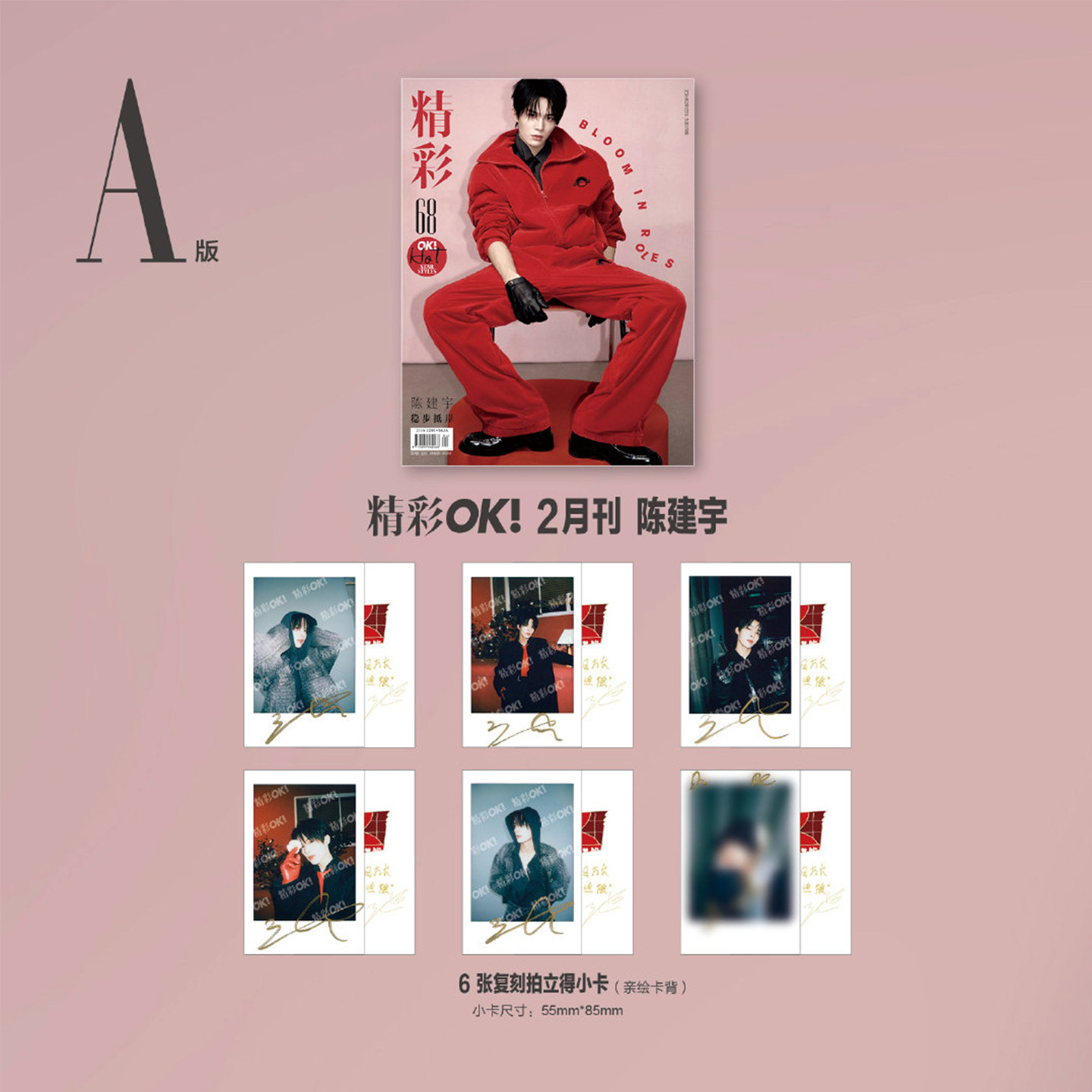 こちらはA版の雑誌セット(雑誌1冊+公式カード6枚)です。 A版表紙:陳建宇(チェン・ジャンユ)1冊 公式特典:A版印刷サイン入りポラロイドカード6枚 ※現地発売予定日:2-3月(予約商品です) ※発送予定:ご注文後60日以内をめどに発送の予定です。