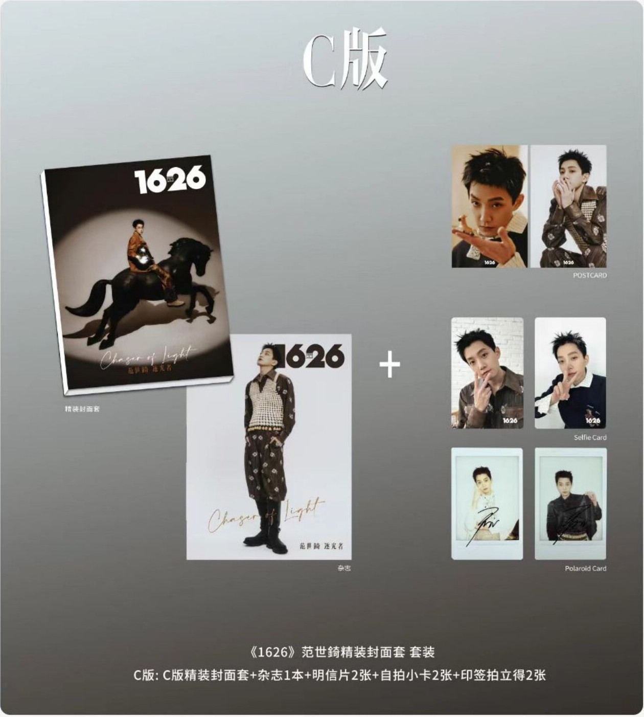 雑誌1冊+C版ポストカード2枚+C版自撮りフォトカード2枚+C版印刷サイン入りポラロイドカード2枚