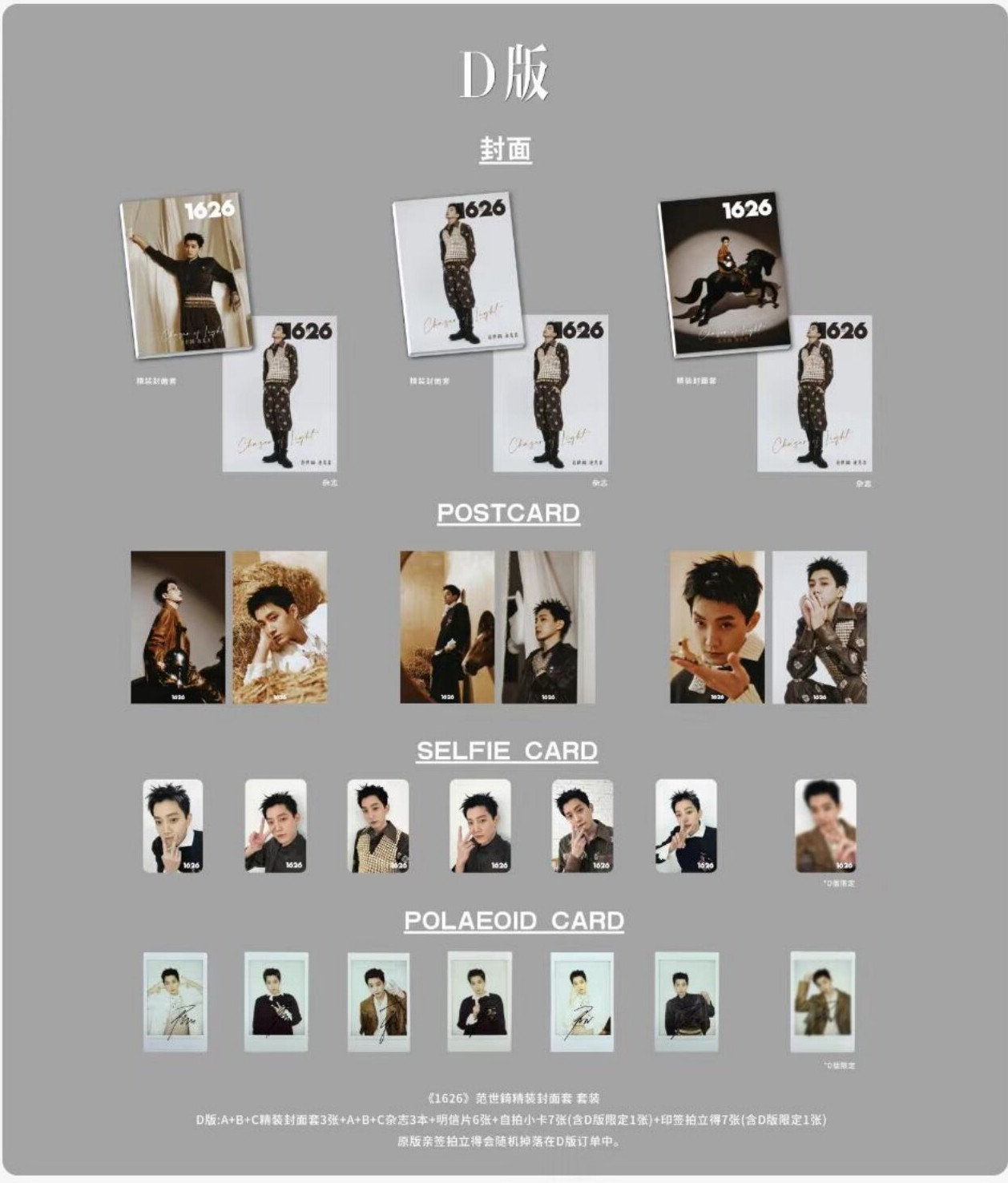 雑誌3冊+ポストカード6枚(ABC版各2枚)+自撮りフォトカード7枚(ABC版各2枚+D版限定1枚)+印刷サイン入りポラロイドカード7枚(ABC版各2枚+D版限定1枚)