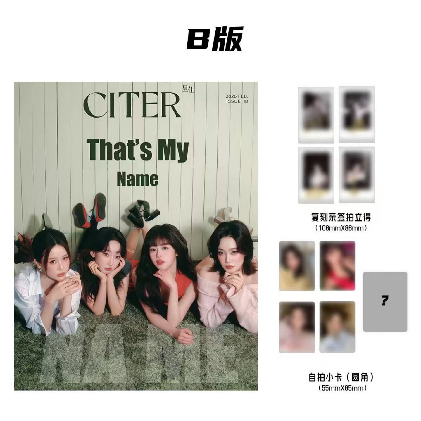B版表紙:NAME組合(龍韵竹、欧陽澄汐、劉嘉欣、李思陽)1冊