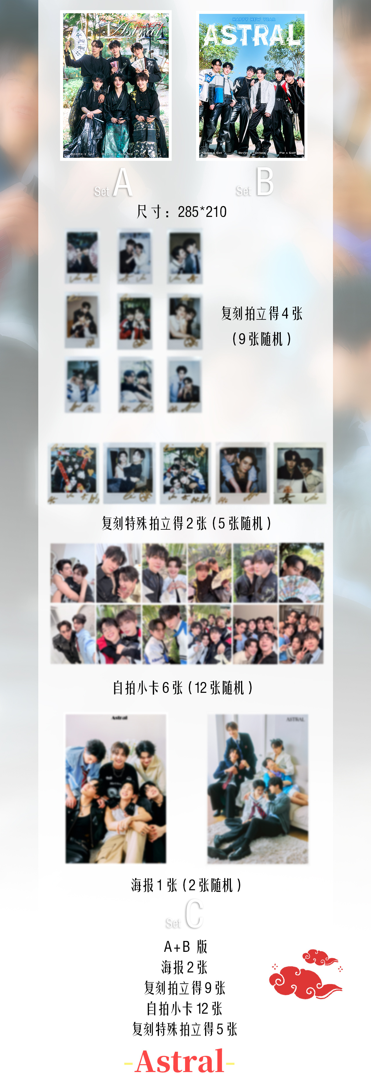 公式特典:印刷サイン入りポラロイドカード9枚+特殊ポラロイドカード5枚+自撮りフォトカード12枚+ポスター2枚