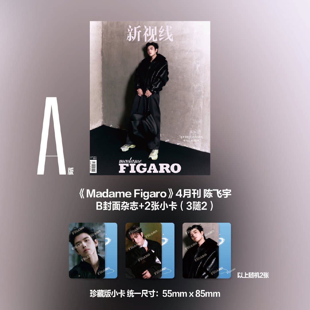 こちらはA版の雑誌セット(雑誌1冊+公式カード2枚)です。 A版表紙:陳飛宇(チェン・フェイユー)1冊 公式特典:A版フォトカード2枚(3枚からランダム) ※現地発売予定日:4-5月(予約商品です) ※発送予定:ご注文後60日以内をめどに発送の予定です。