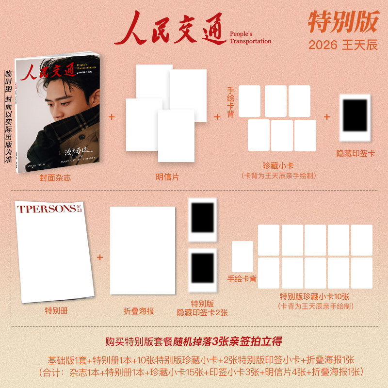 基礎版一式(雑誌1冊+ポストカード4枚+珍蔵フォトカード5枚+隠蔵印刷サイン入りフォトカード1枚)+特別冊+折畳みポスター1枚+隠蔵印刷サイン入りポラロイドカード2枚+特別版珍蔵フォトカード10枚