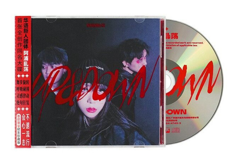 《阿浦乱蕩》的成员从朋友到成团,是聚会碰杯时突如其来的一拍即合,也是多年玩伴的默契在音乐中顺势结盟一一以歌以诗。一个流行音乐达人,一个诗歌写作者,一个新鲜唱作人,既有同频共振的火花,又极具跳脱常规的挑战性。组合名称来自一个偶然的绮梦, Up n’ Down ,如此简单而动感,就像凌晨的迪斯科舞氵也里那些自由的姿态,迷津、乱荡、摇坠,半醉半醒之间,三人恍然大悟,势要为这个时代的好男好女描图写传。阿浦乱荡首张同名专辑《阿浦乱荡》, 12 首全新创作,每一首歌都以词为最初的舞步,三人组合的呼吸碰撞,就是灵感律动的 Up n’ Down (上下起伏 ) 从绝句到绝句,尾声重返开场,如此循环往复,你完全可以在阿浦乱荡的世界里放松喝醉,尽情颠倒。实体设计以”旧记忆复古”和”新视觉趣味”为意象进行展开,采用经典 12CM 塑胶方盒搭配侧标设计,还原经典实体音乐时代的记忆。专辑写真摄影做复古颗粒胶片感特效设计,呈现不一样的干禧时髦氛围。阿浦乱荡特邀一众好友全员手写专辑歌词,增添专辑独一无二的设计趣味和纪念性。十师特另刂根据每首歌不同的手写字体与曲风意象,逐一定制版式十,让整本歌词册翻阅起来小惊喜不断。精美 PVC 胶片半透明印刷,拿在手中可随光呈现不一样的透亮与变化。高清图片印刷哑粉纸与手写腿里道林纸相结合搭配折叠长页设计,让人翻阅起来如游戏迷宫一般趣味不断,十分用心。