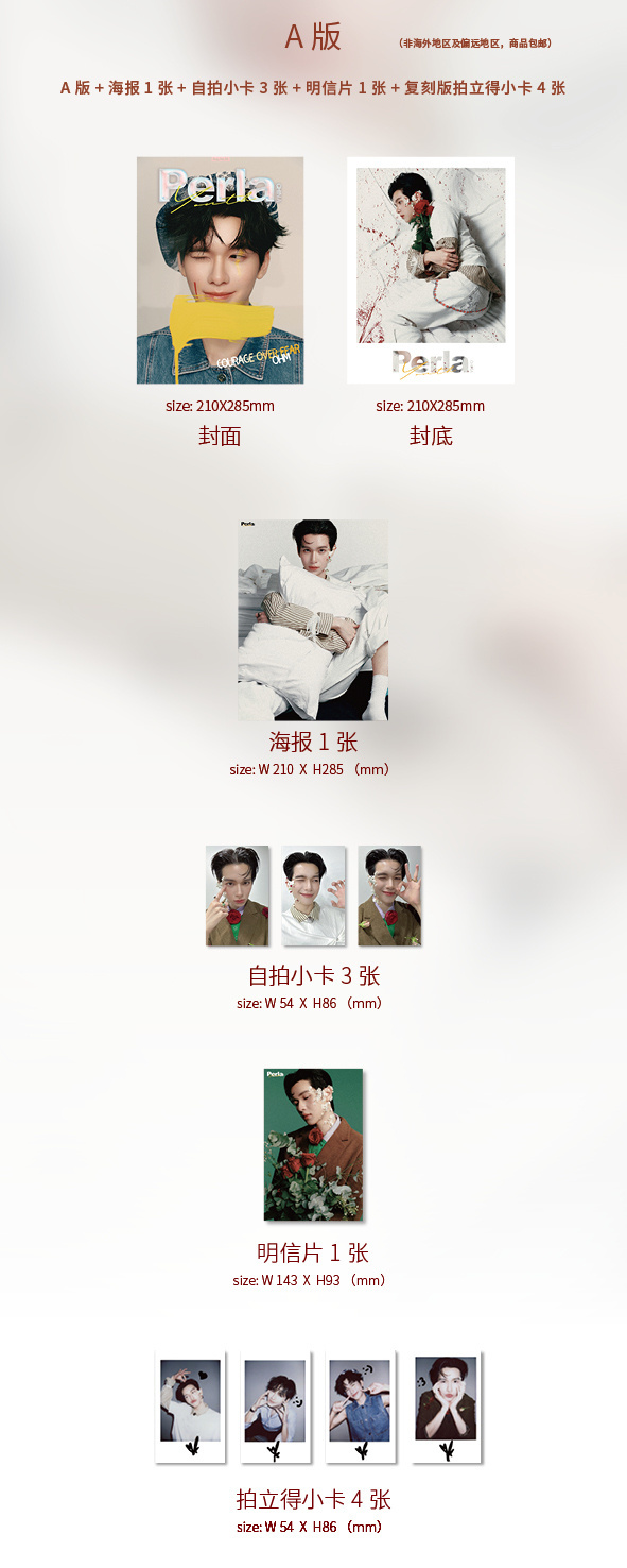 雑誌1冊+A版自撮りフォトカード3枚+A版印刷サイン入りポラロイドカード4枚+A版ポストカード1枚+A版ミニポスター1枚