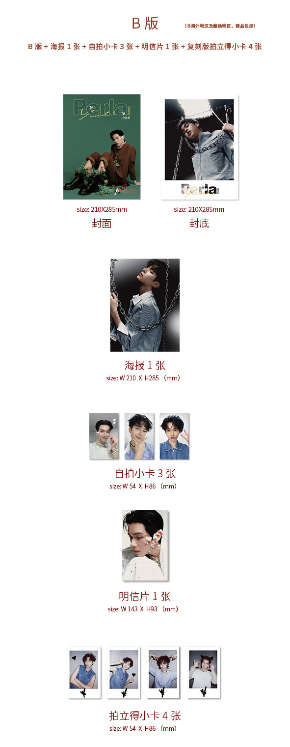 雑誌1冊+A版自撮りフォトカード3枚+A版印刷サイン入りポラロイドカード4枚+A版ポストカード1枚+A版ミニポスター1枚