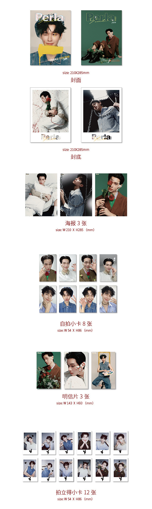 雑誌2冊+自撮りフォトカード8枚(AB版各3枚+C版2枚)+印刷サイン入りポラロイドカード12枚(ABC版各4枚)+ポストカード3枚(ABC版各1枚)+ミニポスター3枚(ABC版各1枚)