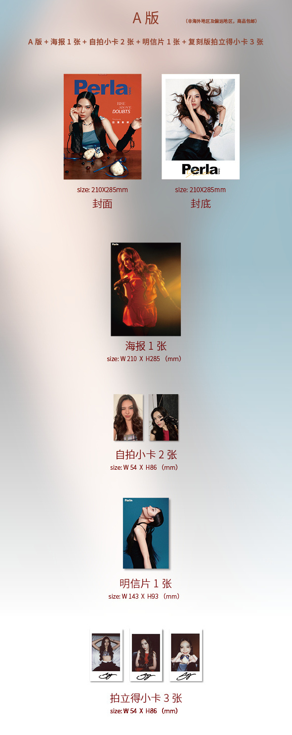 雑誌1冊+A版自撮りフォトカード2枚+A版印刷サイン入りポラロイドカード3枚+A版ポストカード1枚+A版ミニポスター1枚