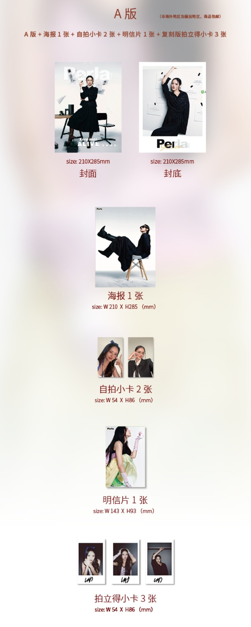 >>A版はこちら >>B版はこちら >>C版2冊セットはこちら こちらはA版の雑誌セット: 雑誌1冊+A版自撮りフォトカード2枚+A版印刷サイン入りポラロイドカード3枚+A版ポストカード1枚+A版ミニポスター1枚 A版表紙:Lookmhee 1冊 ※雑誌社の公式Weiboより(ご参考資料) ※実際の記事写真とは異なる場合がございます。予めご了承下さい。