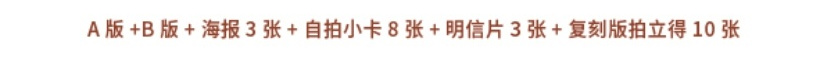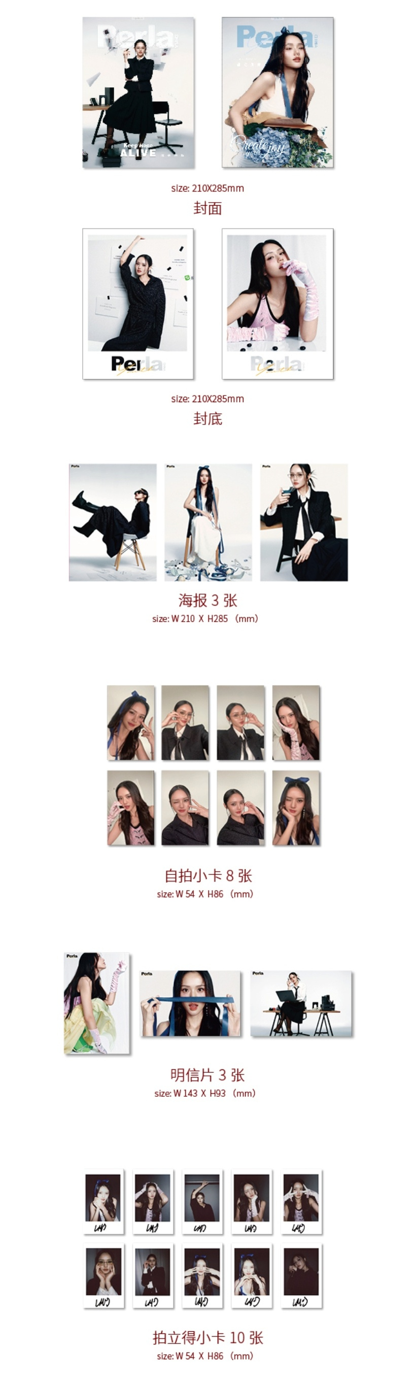 雑誌2冊+自撮りフォトカード8枚(AB版各3枚+C版2枚)+印刷サイン入りポラロイドカード10枚(AB版各3枚+C版4枚)+ポストカード3枚(ABC版各1枚)+ミニポスター3枚(ABC版各1枚)