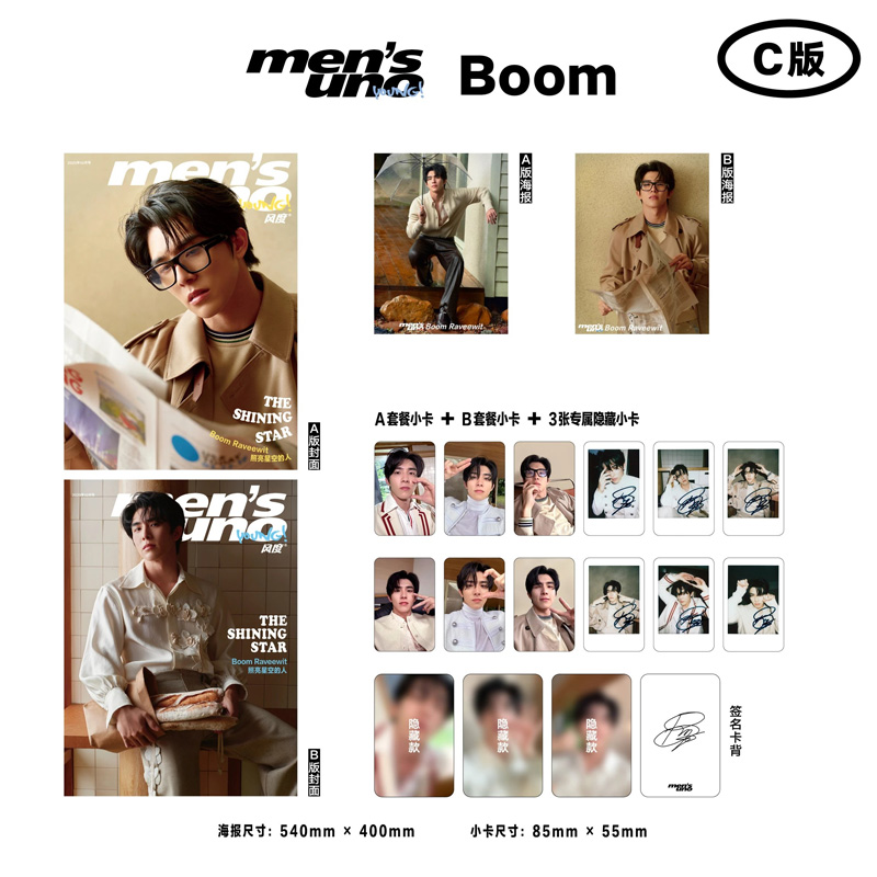 雑誌2冊+フォトカード6枚(AB版各3枚)+印刷サイン入りポラロイドカード6枚(AB版各3枚)+C版隠藏フォトカード3枚+折畳ポスター2枚(AB版各1枚)
