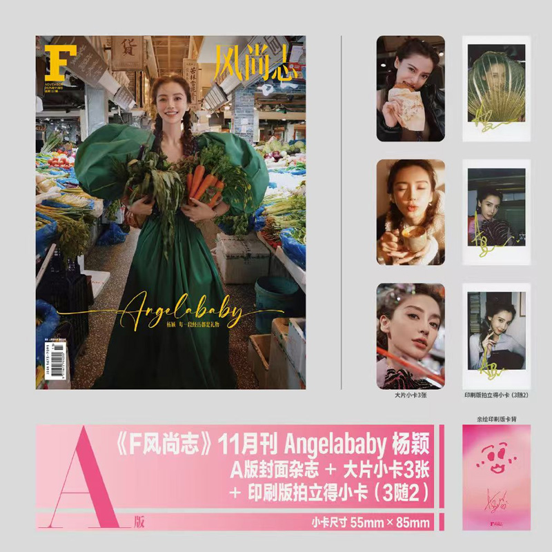 こちらはA版の雑誌セット(雑誌1冊+公式カード5枚)です。 A版表紙:Angelababy楊穎(アンジェラベイビー)1冊 公式特典:A版フォトカード3枚+A版印刷サイン入りポラロイドカード2枚(3枚からランダム) ※現地発売予定日:11月(予約商品です) ※発送予定:ご注文後30日以内をめどに発送の予定です。