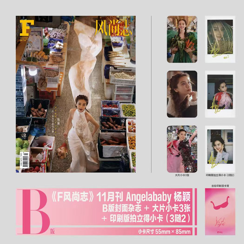 こちらはB版の雑誌セット(雑誌1冊+公式カード5枚)です。 B版表紙:Angelababy楊穎(アンジェラベイビー)1冊 公式特典:B版フォトカード3枚+B版印刷サイン入りポラロイドカード2枚(3枚からランダム) ※現地発売予定日:11月(予約商品です) ※発送予定:ご注文後30日以内をめどに発送の予定です。