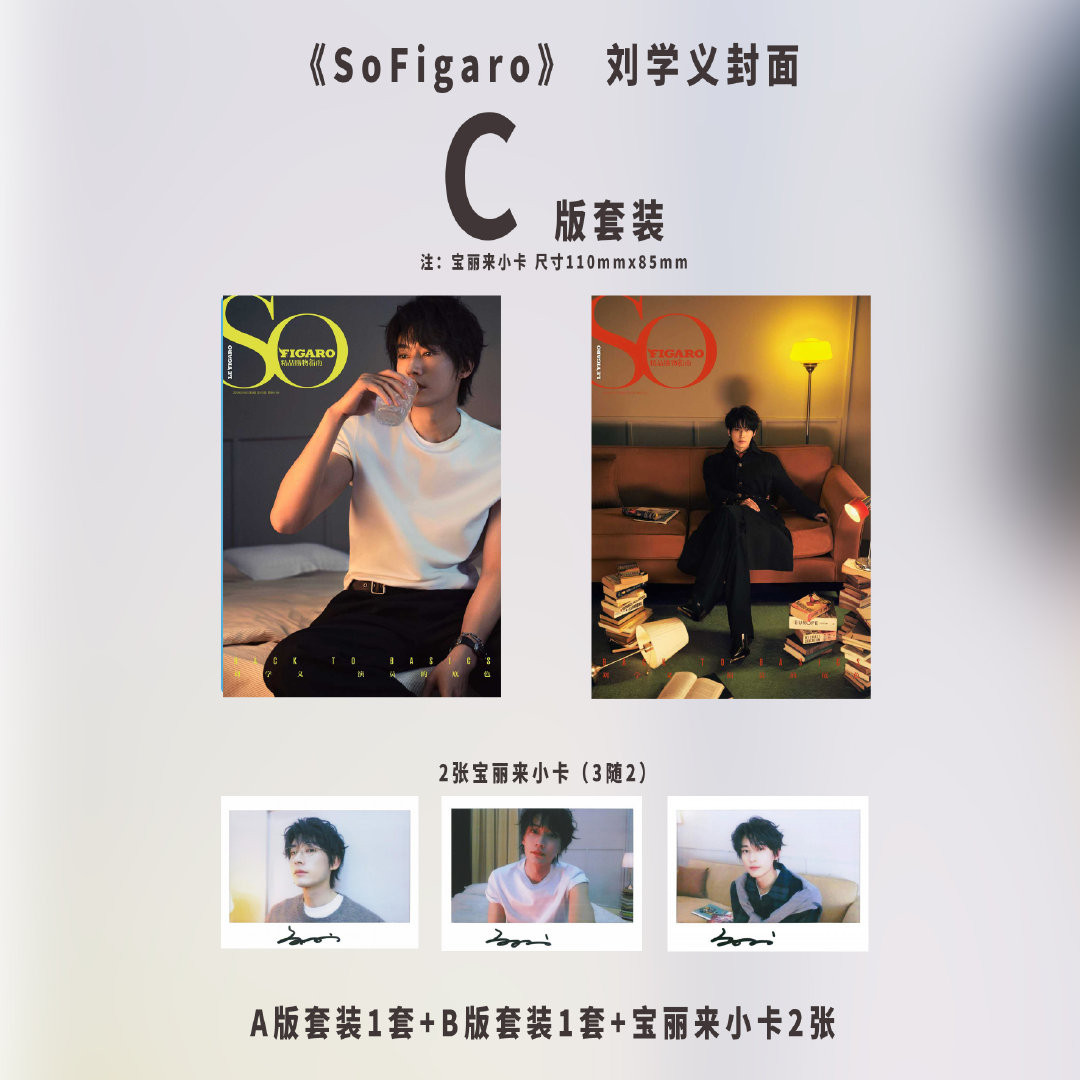 こちらはC版2冊セット(雑誌2冊+公式カード全12枚)です。 A版表紙:リウ・シュエイー(劉学義)1冊 B版表紙:リウ・シュエイー(劉学義)1冊 特典:自撮りフォトカード4枚(AB版各2枚)+大片フォトカード4枚(AB版各2枚)+印刷サイン入りポラロイドカード2枚(各2枚からランダムのAB版各1枚)+C版印刷サイン入りポラロイドカード2枚(3枚からランダム)
