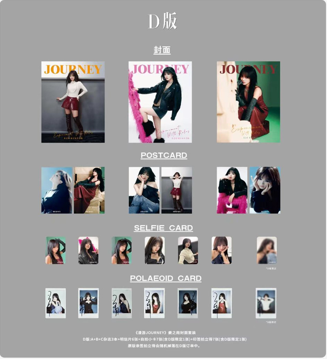 雑誌3冊+ポストカード6枚(ABC版各2枚)+自撮りフォトカード7枚(ABC版各2枚+D版1枚)+印刷サイン入りポラロイドカード7枚(ABC版各2枚+D版1枚)