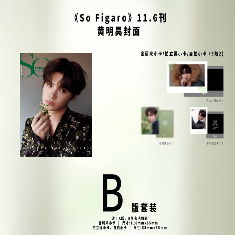 こちらはB版の雑誌セット(雑誌1冊+公式カード2枚)です。 B版表紙:黄明昊(ジャスティン/ホアン・ミンハオ)1冊 公式特典:フォトカード2枚(宝丽来小卡・拍立得小卡・自拍小卡/3枚からランダム) ※現地発売予定日:11月(予約商品です) ※発送予定:ご注文後30日以内をめどに発送の予定です。
