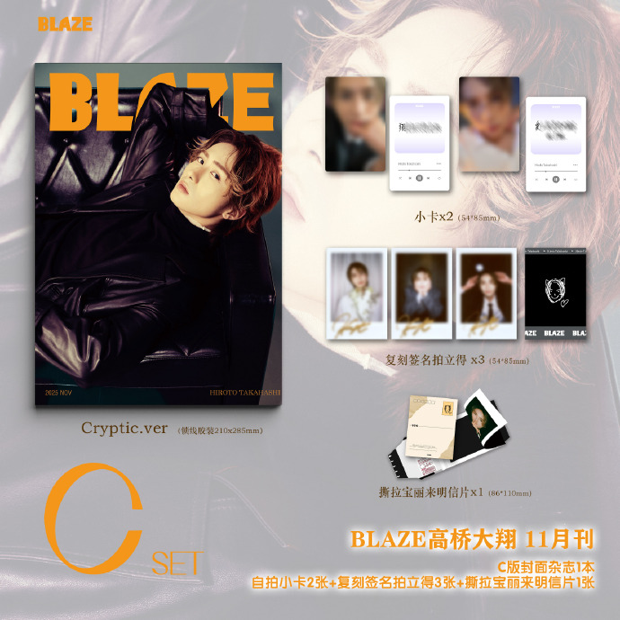 雑誌1冊+C版フォトカード2枚+C版印刷サイン入りポラロイドカード3枚+C版ポラロイドポストカード(8.6x11cm)1枚