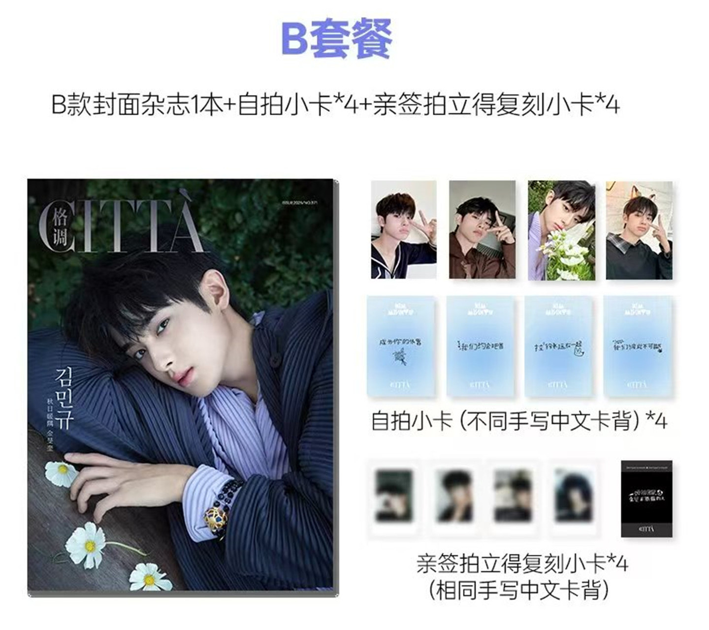 雑誌1冊+B版自撮りフォトカード4枚+B版印刷サイン入りポラロイドカード4枚
