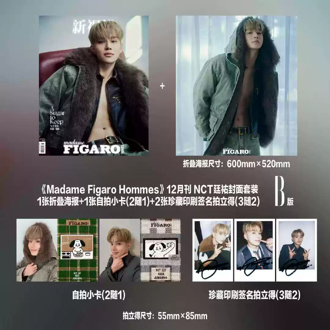 雑誌1冊+フォトカード1枚(2枚からランダム)+印刷サイン入りポラロイドカード2枚+B版折畳ポスター1枚