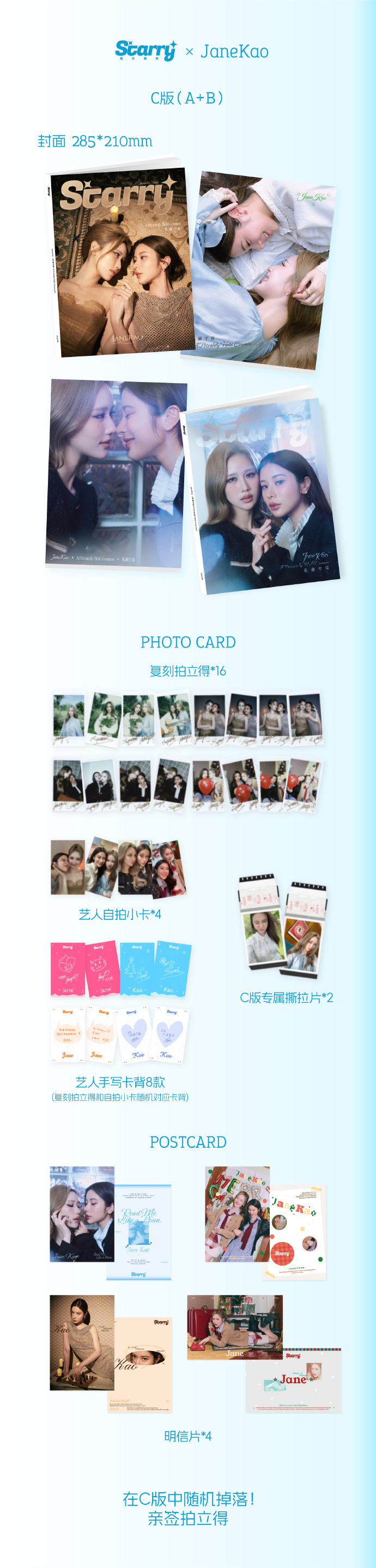 雑誌2冊+印刷サイン入りポラロイドカード16枚+自撮りフォトカード4枚+ポストカード4枚 C版専属ポラロイド撕拉片2枚