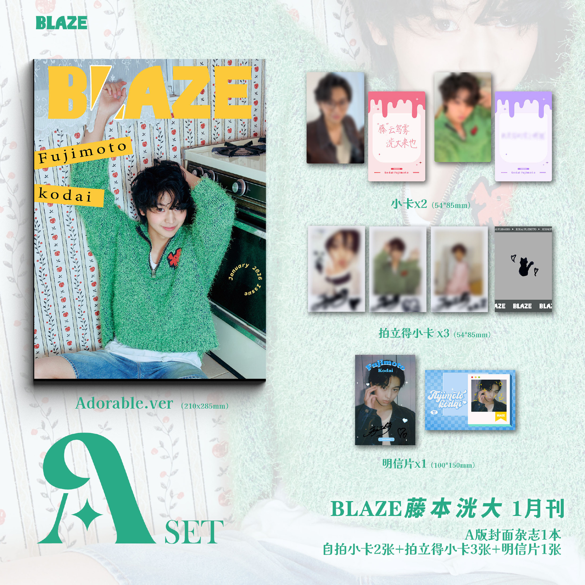 雑誌1冊+A版フォトカード2枚+A版ポラロイドカード3枚+A版ポストカード1枚