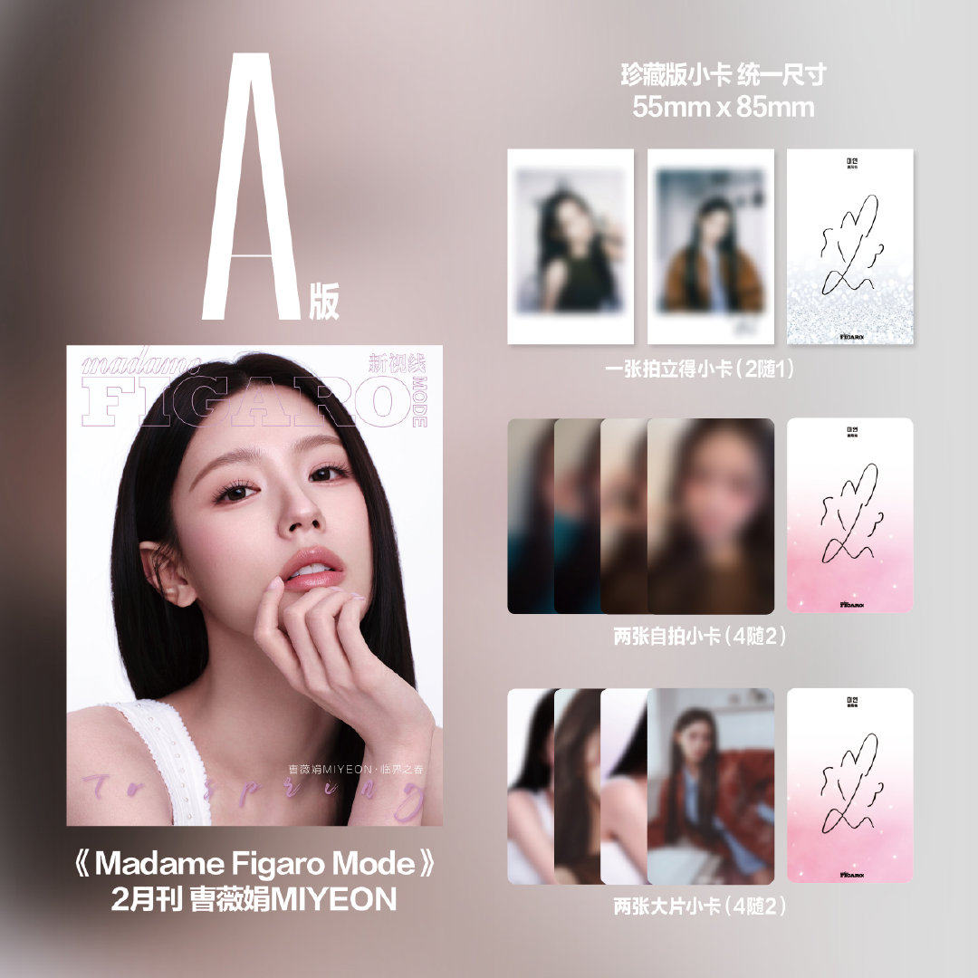 >>A版はこちら >>B版はこちら >>AB版2冊セットはこちら こちらはA版の雑誌セット: 雑誌1冊+印刷サイン入りポラロイドカード1枚(2枚からランダム)+自撮りフォトカード2枚(4枚からランダム) A版表紙:ミヨンMIYEON/i-dle 1冊 ※雑誌社の公式Weiboより(ご参考資料) ※実際の記事写真とは異なる場合がございます。予めご了承下さい。