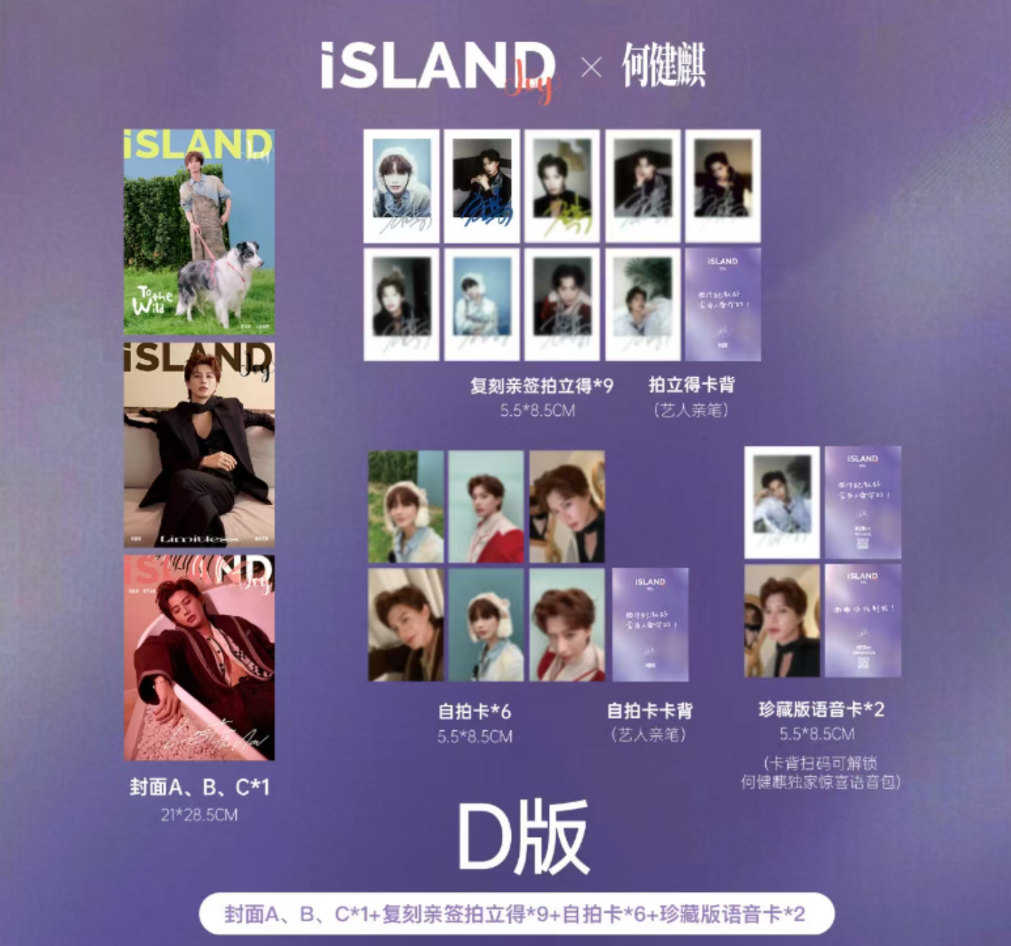 雑誌3冊+印刷サイン入りポラロイドカード9枚(ABC版各2枚+D版3枚)+自撮りボイスカード6枚(ABC版各2枚)+D版隠蔵語音フォトカード2枚