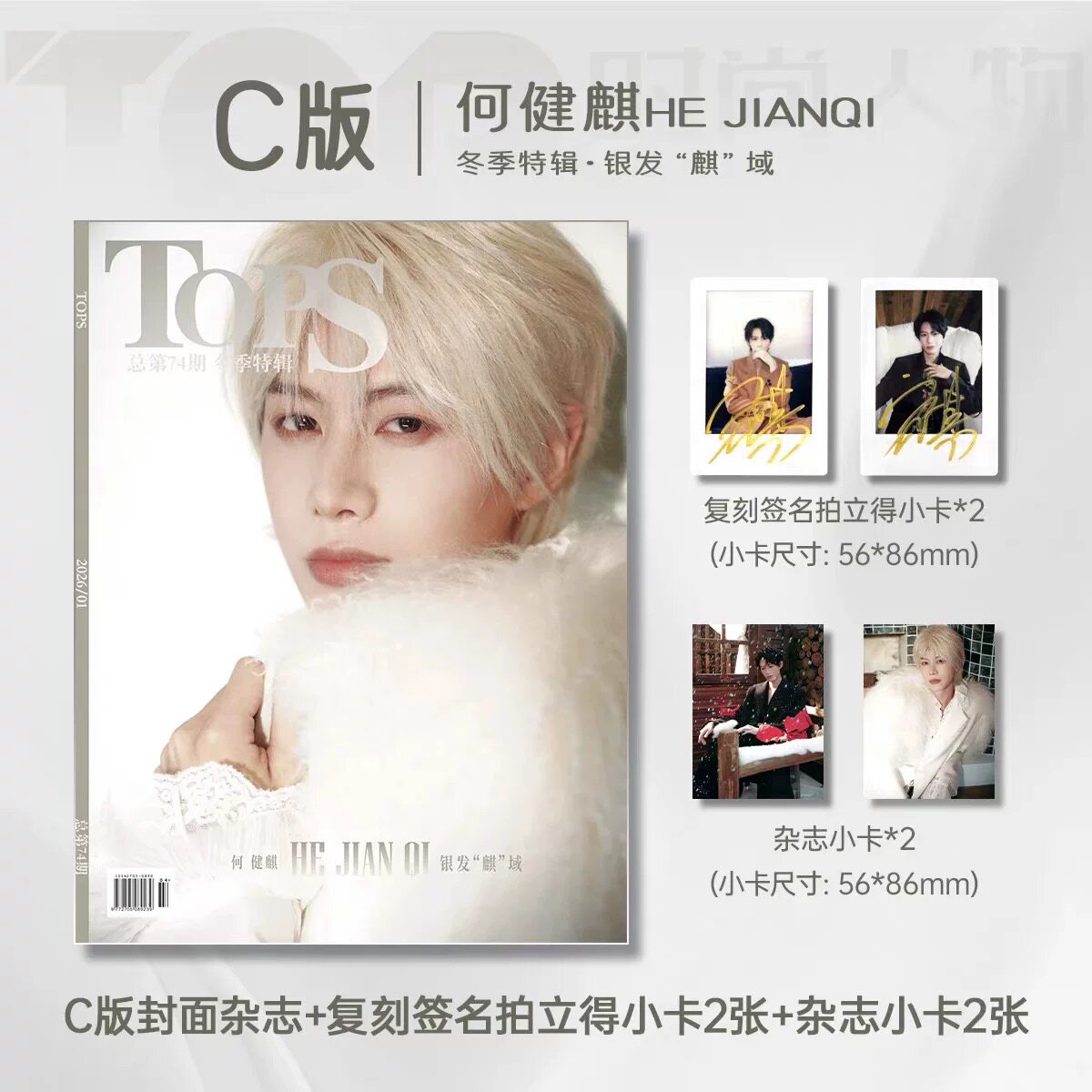 こちらはC版の雑誌セット(雑誌1冊+公式カード4枚)です。 C版表紙:何健麒(ホー・ジェンチー)1冊 公式特典:C版印刷サイン入りポラロイドカード2枚+C版フォトカード2枚