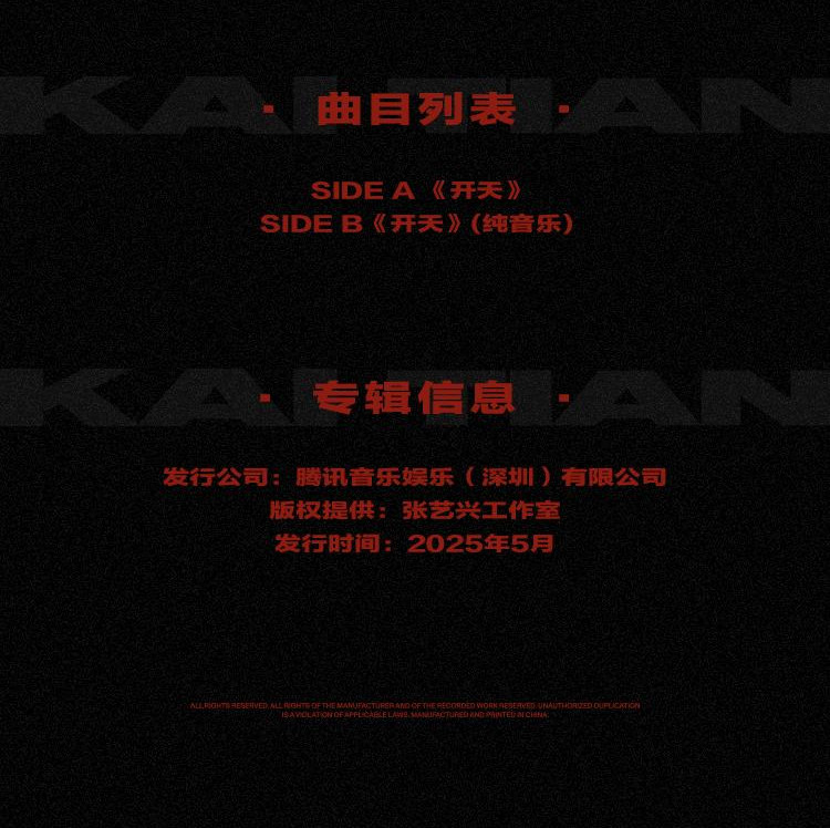 張芸興(チャン・イーシン)の2025年リリース実体专辑『开天』画胶LP黑胶唱片+写真书NFC小卡海报 |